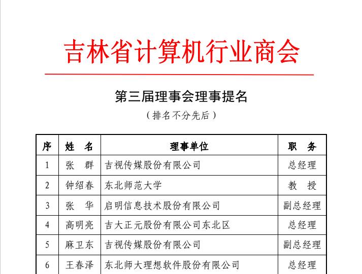 2016年6月2日,在長(zhǎng)春舉辦的吉林省計(jì)算機(jī)行業(yè)商會(huì)第三屆理事會(huì)第一次會(huì)議中,長(zhǎng)春巴吉達(dá)咨詢有限公司在全省201家計(jì)算機(jī)行業(yè)企業(yè)中,以唯一一家咨詢類機(jī)構(gòu)入選,成為吉林省計(jì)算機(jī)行業(yè)商會(huì)第三屆理事會(huì)理事單位。